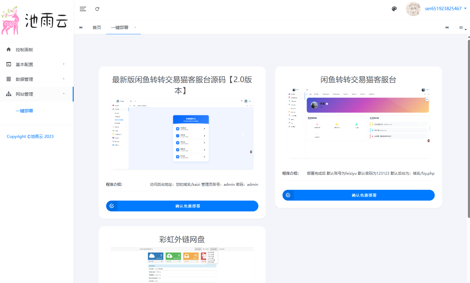 池雨云一家免实名国外云服务器提供商,可提供一键部署服务