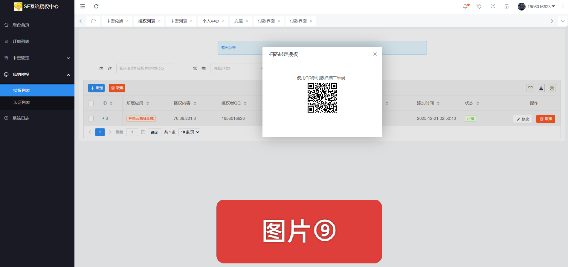 【点击绑定会出现一个二维码 【如图片⑨所示】使用你自己本人自用的QQ号进行扫码绑定】