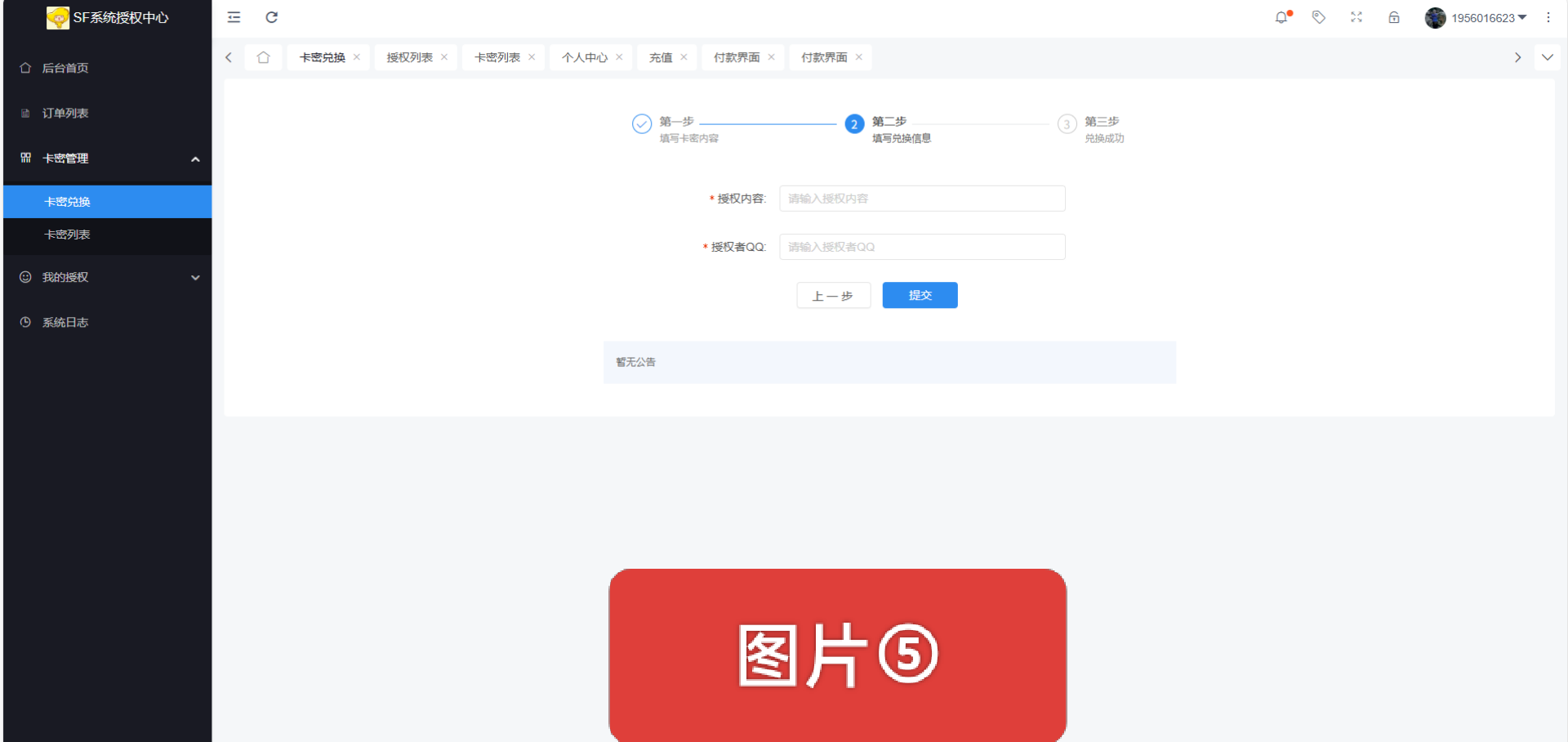 【点击左边栏目 卡密管理 卡密兑换 】