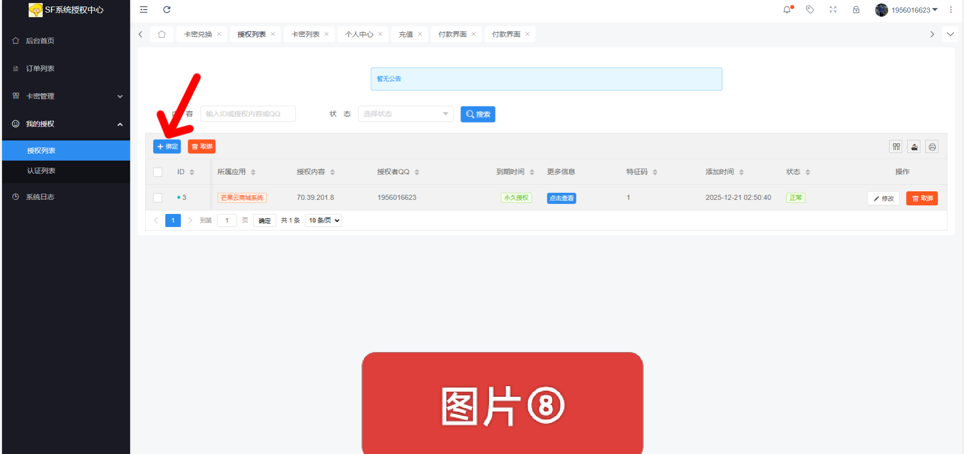 【点击左边栏目 我的授权 授权列表】